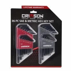 - 9 Piece Long Arm SAE: 1/16″, 5/64″, 3/32″, 1/8″, 9/64″, 5/32″, 3/16″, 1/4″, 5/16″.
