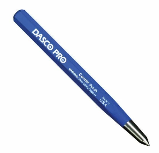 A Dasco 7/16″ x 5″ center punch is used for making accurate hole starting easier.