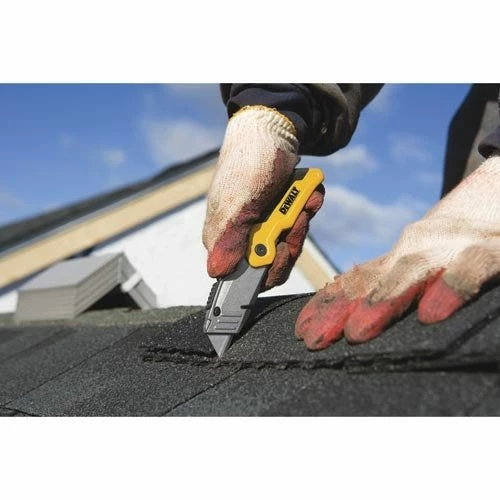 The DEWALT DWHT10035L Folding Retractable Utility Knife has a retractable blade that offers a variable cut depth. The rapid load blade change has an easy access button for quick blade change. It has a folding feature for quick and easy one-handed opening/closing and blade storage for convenient access to new blades. It has a rugged metal body for long tool life.