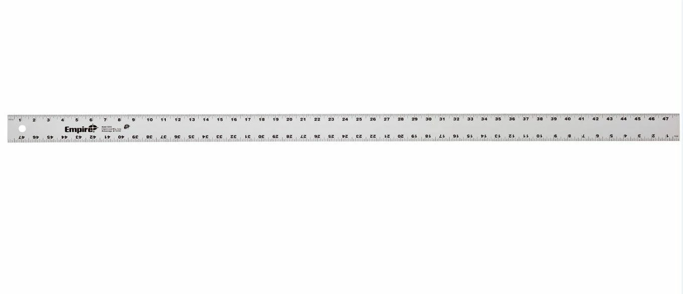 The Empire 4004 48 in. Aluminum straight-edge ruler has many uses in the home and workshop. It has a heavy-duty aluminum frame for strength and features easy-reading inch-scale graduations, allowing measurements to be more accurate. It is designed to measure surfaces up to 4 ft., and its straight edge can also be used as an edge for tracing and drawing straight lines.