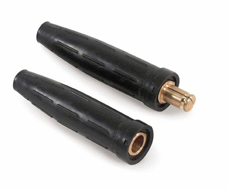 Solid brass camlock-style cable connector for No. 4 to No. 1 cable, connects welding cables quickly and easily with a quarter turn. Will not slip or disconnect when cable is pulled. Hard rubber sheath insulates the connection.
