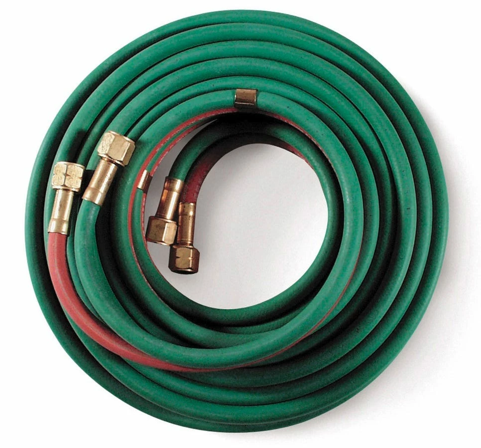 Hobart’s acetylene twin welding hose comes complete with “B” fittings. This high-quality neoprene covered hose is flexible and kink proof.