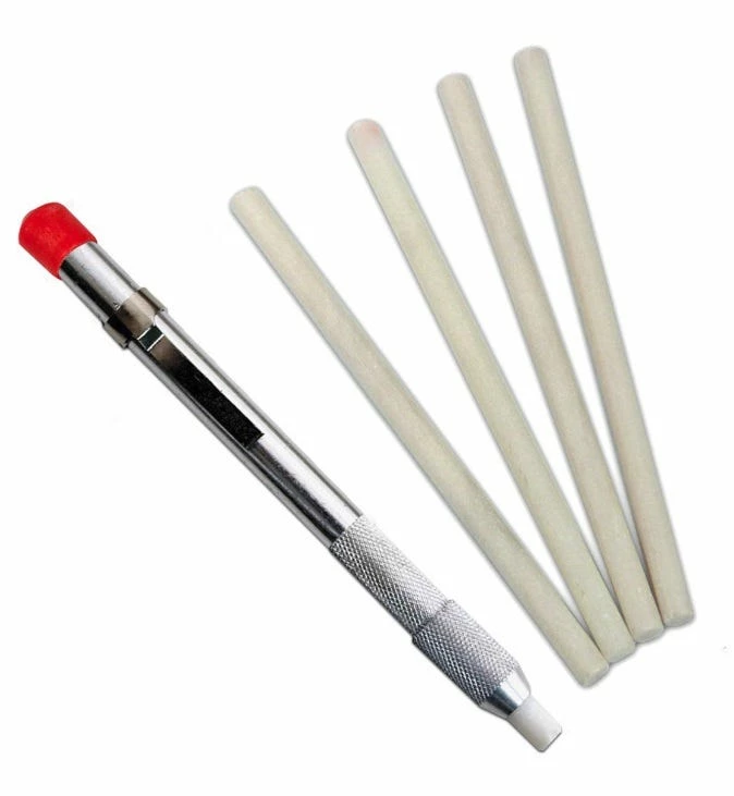 The round soapstone holder securely holds the soapstone in place and features an easily adjustable design. Pure, natural mined soapstone is excellent for marking metals and dark materials and will not burn off even under extreme heat caused by welding and cutting.