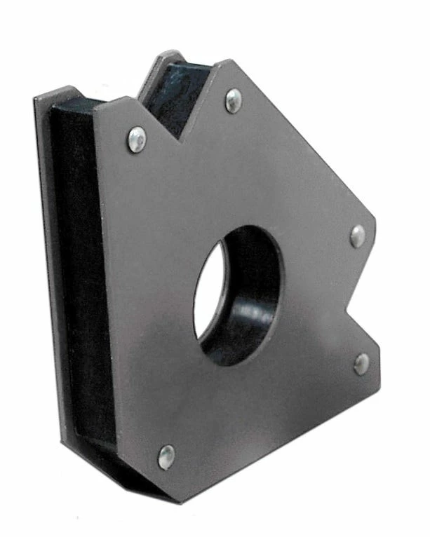 Hobart’s x-large multi-purpose magnetic holder, which can pull up to 75lbs, holds steel pieces in place at 45, 90 and 135 degree angles.