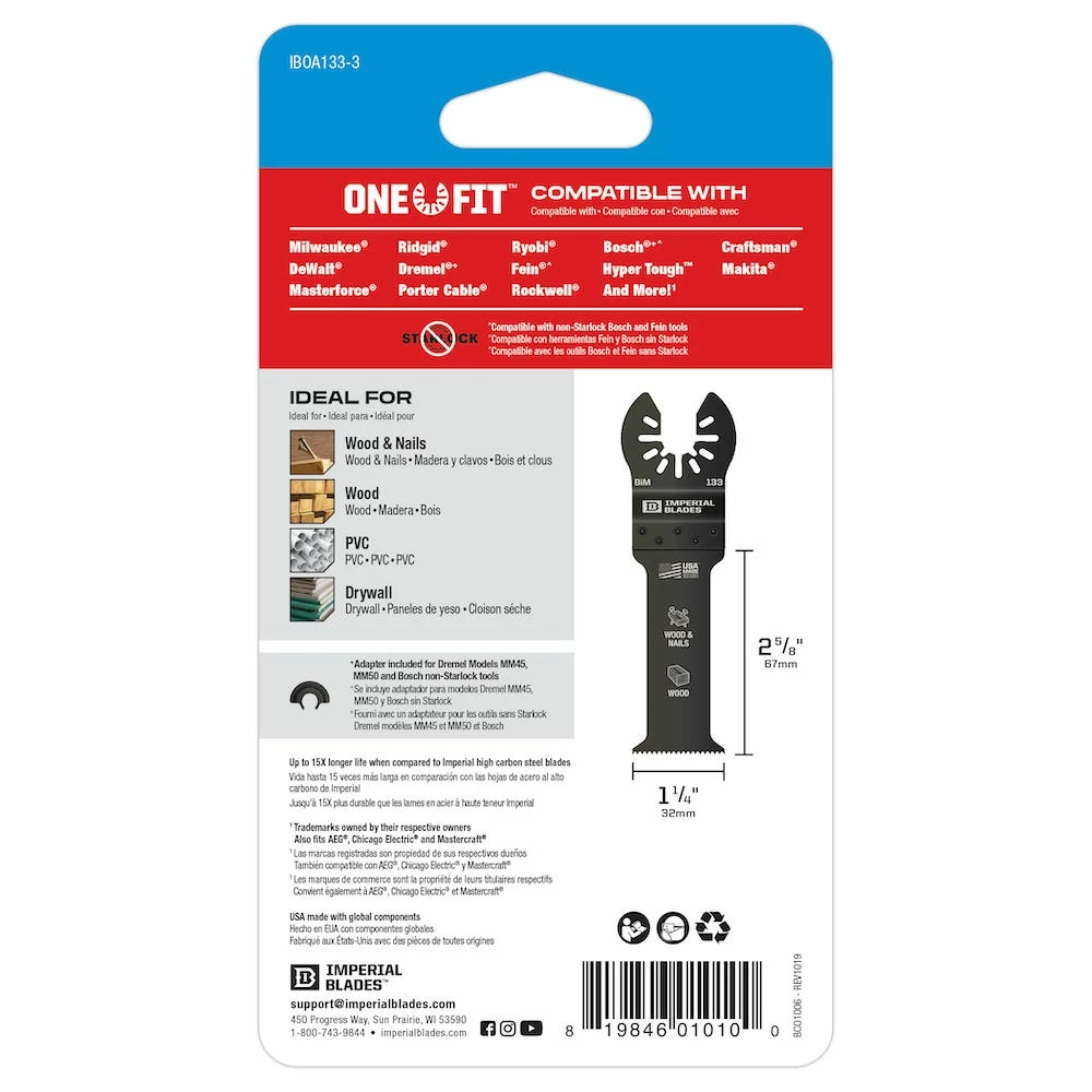 Imperial Blades One Fit 1-1/4″ Extended Plunge Thick Wood Blade, 3 Piece – 98443030