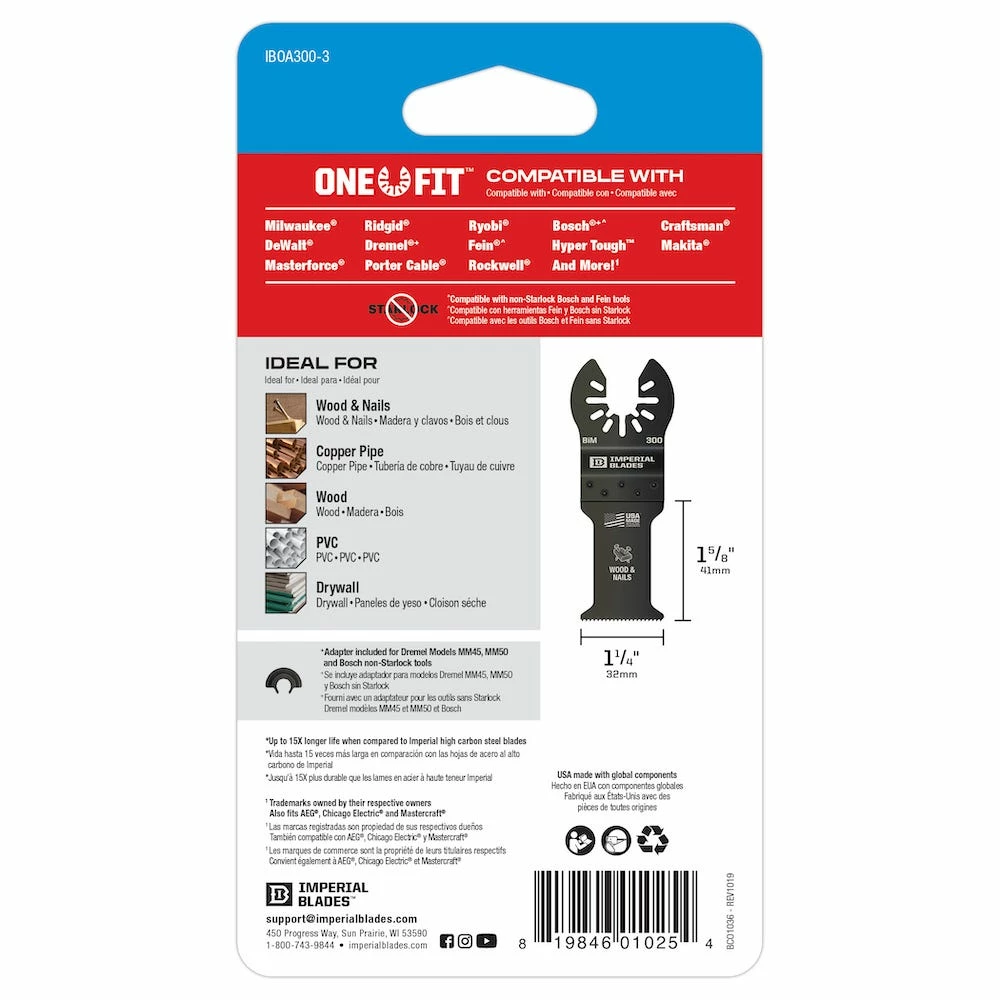 Imperial Blades One Fit 1-1/4″ Standard Wood and Nails Blade, 3 Piece – 98443014