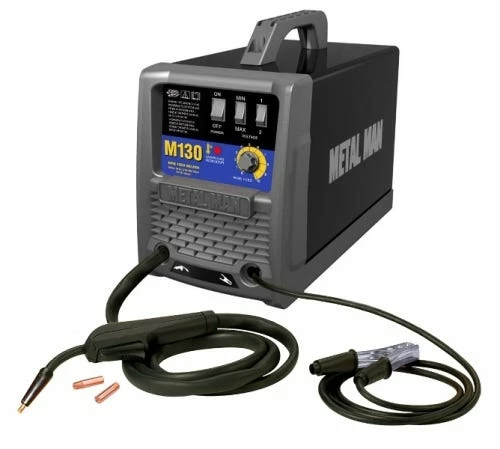The Metal Man M130 is a 115V MIG and flux core wire feed