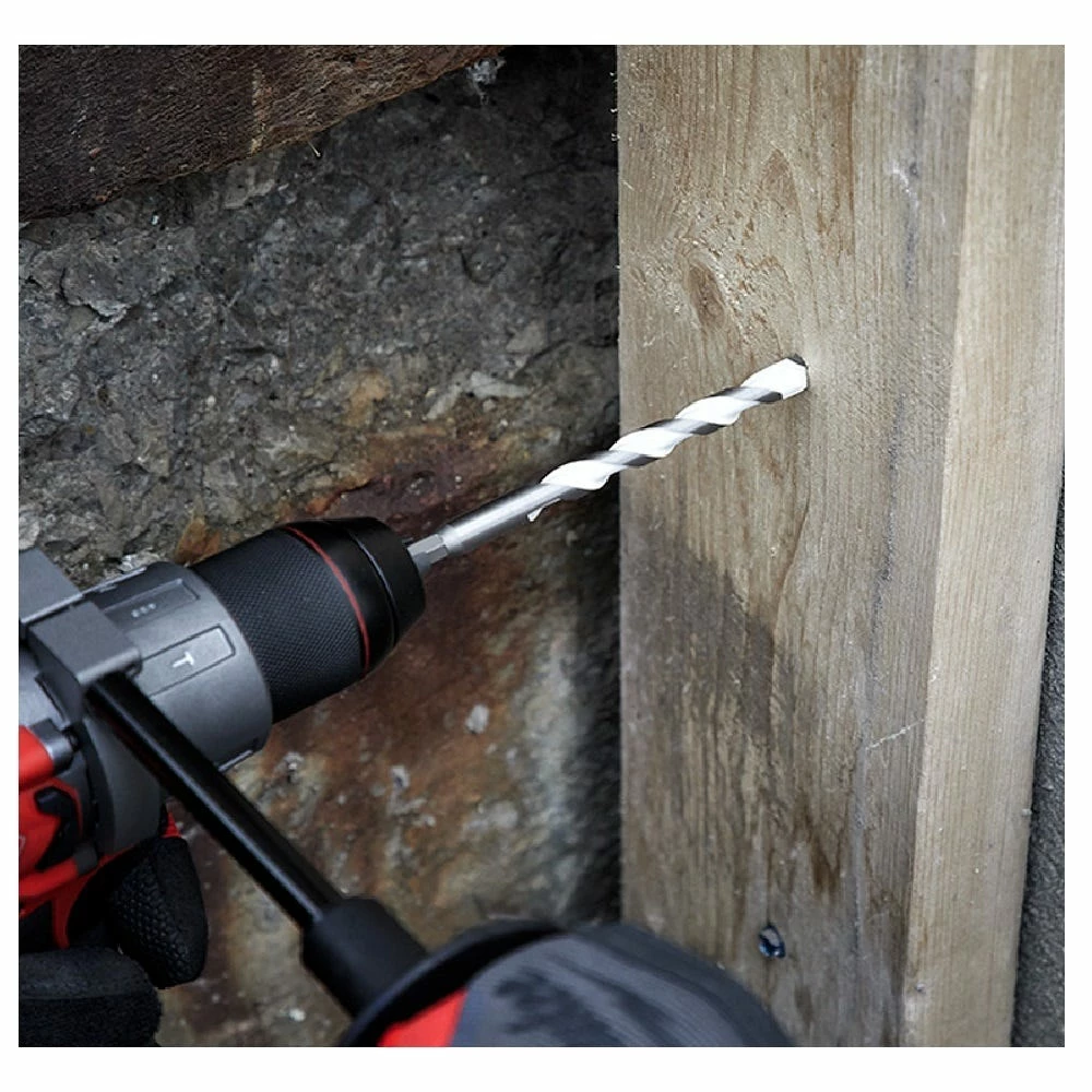 Milwaukee 3/16 in. SHOCKWAVE Carbide Multi-Material Drill Bits are the most versatile bits, designed to tackle a variety of materials, including brick, block, concrete, steel, aluminum, ceramic tile, backerboard, wood, PVC and drywall. The aggressive multi-grind carbide tip delivers up to 10X longer life in stacked materials and up to 85% faster drilling speeds in metal. Equipped with a 1/4 in. hex shank, these all-purpose drill bits are compatible with impacts, drill/drivers and hammer drills. These Milwaukee general-purpose drill bits provide the ideal all-in-one solution for the widest variety of materials, tools and applications.
