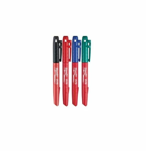 The 48-22-3106 Milwaukee Inkzall Colored Permanent Markers are optimized for jobsite conditions. The durable tip is designed to withstand writing on rough surfaces such as OSB, cinderblock and concrete and writes through dusty, wet or oily contamination. The hard hat clip is designed to clip onto the brim of hard hats for easy access.