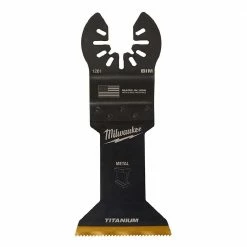 The MILWAUKEE® Universal Fit OPEN-LOK™ 1-3/4″ Titanium Enhanced Bi-Metal Blade 1 Pack is designed for Oscillating Multi-Tools. These multi-tool blades for metal are titanium enhanced and made from premium high-speed steel. The 1-3/4″ bi-metal blade has a slightly narrower cutting width than most standard bi-metal blades and a slightly longer blade body, designed for cutting soft metals, wood, nails, PVC, and drywall. It uses a combination of tooth form and material to offer better cutting performance in soft metals. These bi-metal multi-tool blades are designed and made in the USA with global materials.