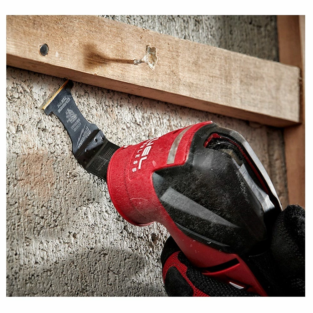The MILWAUKEE® Universal Fit OPEN-LOK™ 1-3/8″ Titanium Enhanced Carbide Teeth Extreme Material Blade 1 Pack is designed for Oscillating Multi-Tools. It has a unique aggressive tooth design that offers optimal cutting performance in wood, screws, metal pipe, nails, cement board, plaster, and more. The 1-3/8″” Titanium Enhanced Carbide Teeth Extreme Material Blade lasts up to 50X longer than standard bi-metal blades and can be used in a wide range of materials for the longest blade life. The unique, aggressive carbide tooth design offers faster cuts and better cutting performance in wood when compared to standard carbide blades. These Milwaukee multi-tool blades are designed and made in the USA with global materials.
