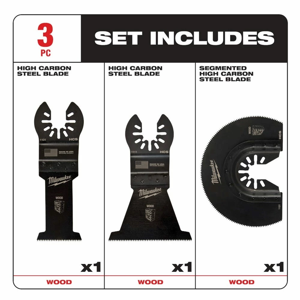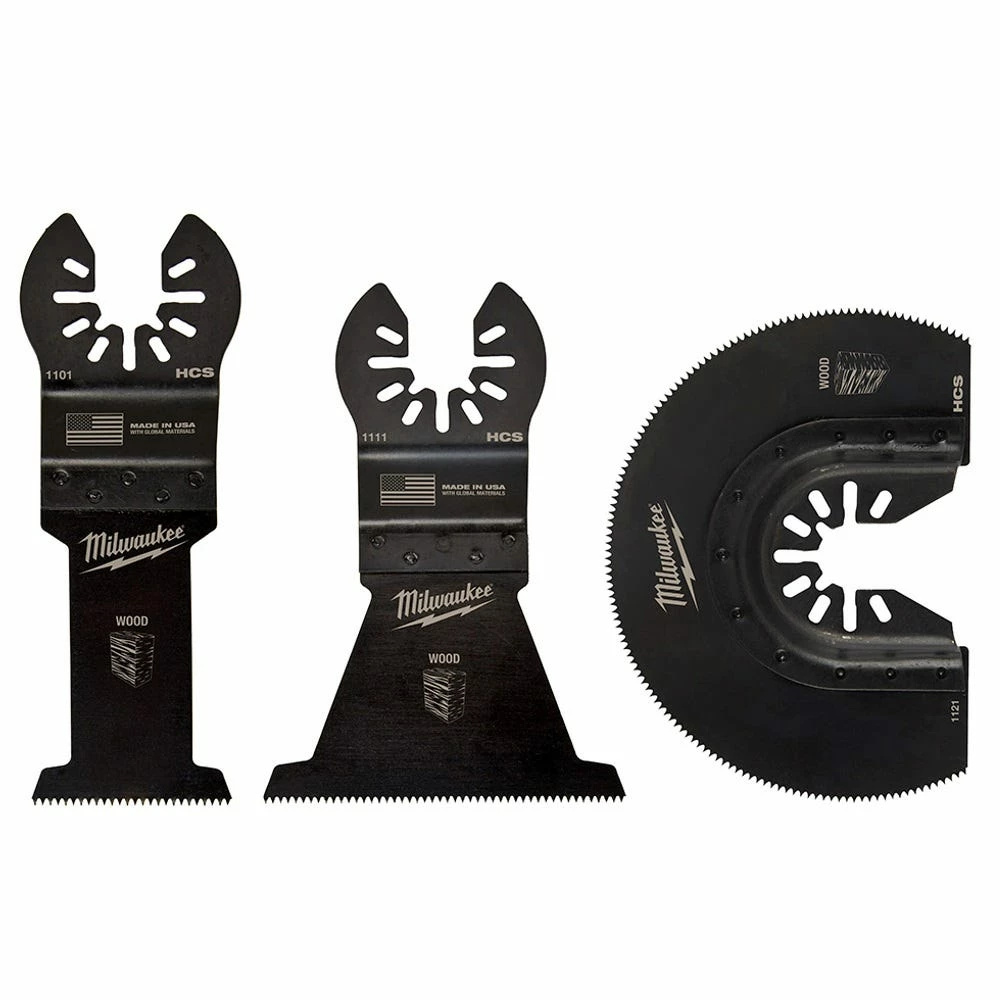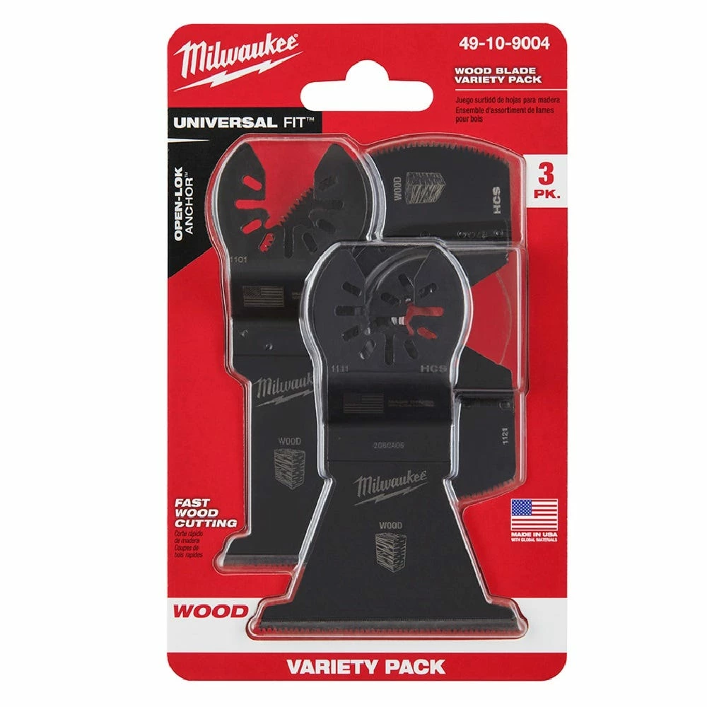 The MILWAUKEE® Universal Fit OPEN-LOK™ 3-Piece Wood Cutting Oscillating Multi-Tool Variety Pack features an assortment of the next generation oscillating blades for optimal cutting performance in wood, PVC, drywall, and other soft materials. The oscillating wood blades are designed with aggressive, precision ground teeth for fast cuts in wood, drywall, and PVC. A 1-3/8″” end-cut blade, a 2-1/2″” end-cut blade, and 3-1/2″” segmented blade offer versatile cutting to ensure the right blade for the right cut. This oscillating tool blade variety pack is designed and made in the USA with global materials.