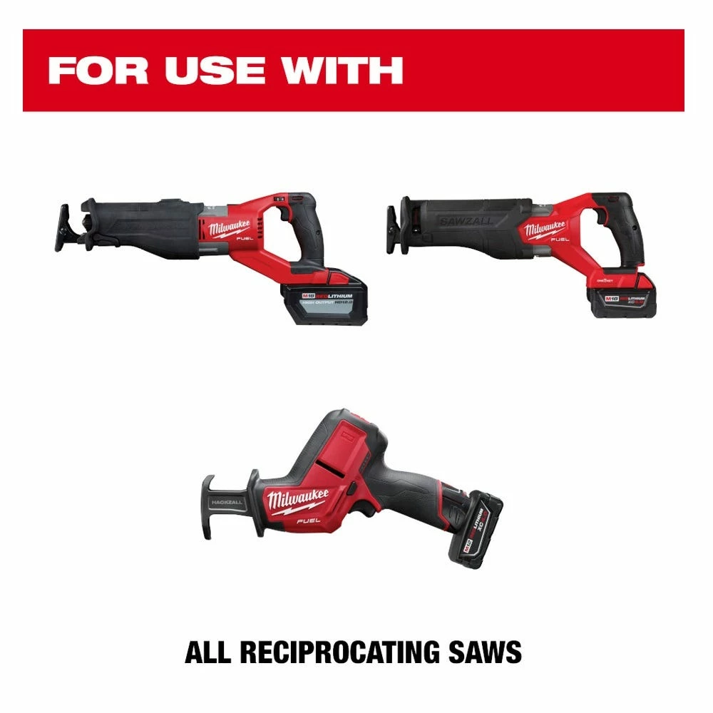 Our WRECKER™ with Carbide Teeth SAWZALL® Blades are the most versatile carbide blade on the market. These multi-material SAWZALL® blades offer up to 50X more life vs. bi-metal reciprocating saw blades available today. The MILWAUKEE® WRECKER™ Carbide SAWZALL® blades offers a 6 TPI design, which allows for cutting into a wide variety of materials from clean wood to cast iron for quick demolition and remodeling work. The Fang Tip™ Design allows for faster plunge cuts into wood materials. Milwaukee Carbide Teeth products allow you to cut longer, cut more, and cut faster than other carbide-teeth blades on the market.