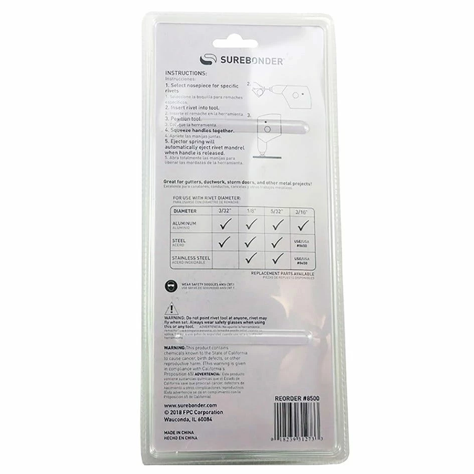 - Will set Copper 1/8-Inch and 15/64-Inch diameter rivets