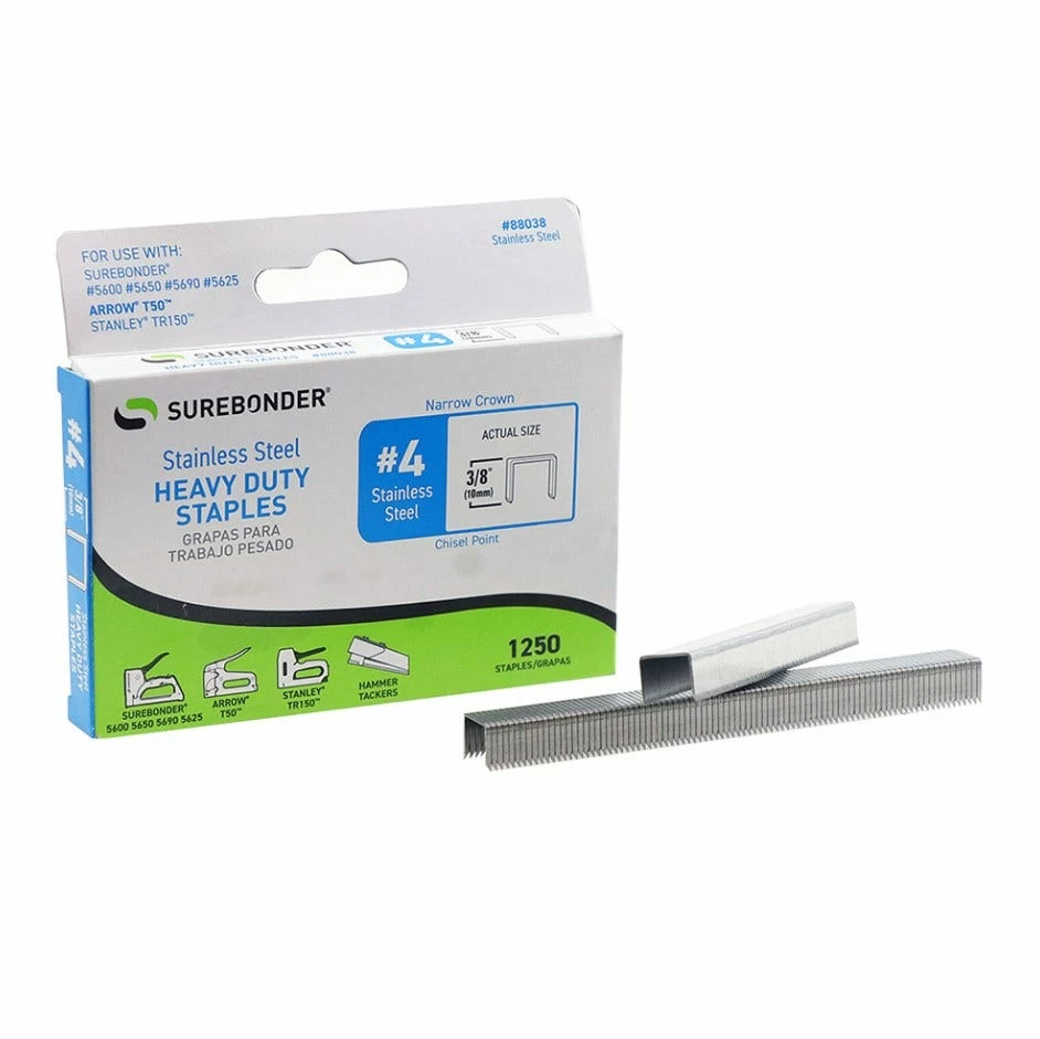 #4 Stainless Steel 3/8″ Narrow Crown Staples – 1250 ct.