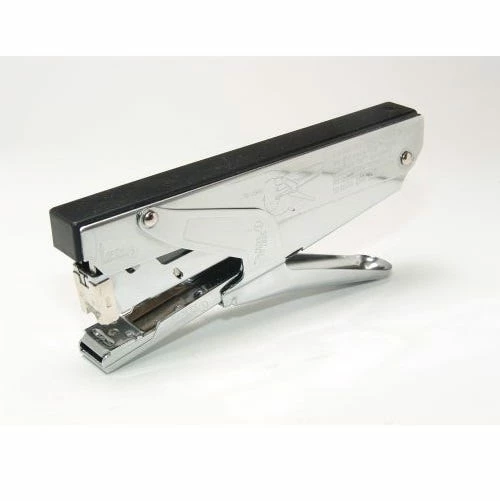 Easy loading with flip handle design. Long 2-1/4″ throat for hard to reach stapling.