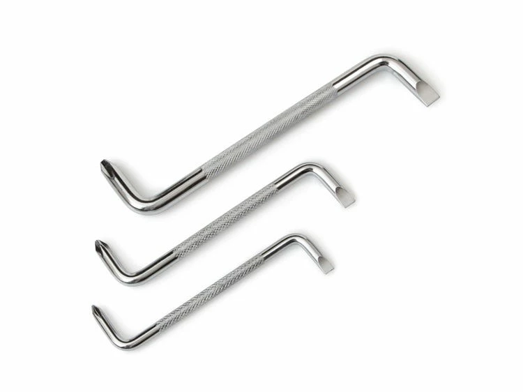 Reach around obstructions and access screws hidden in tough spots with TEKTON Offset Screwdrivers. Slotted and Phillips tips are located at opposite ends of each driver and are bent to a 90-degree angle to create the necessary clearance. This design has the additional benefit of a longer lever arm that allows you to generate more torque. The one-piece heat-treated steel construction is as strong as it is simple. A chrome plated finish keeps rust away and easily wipes clean.